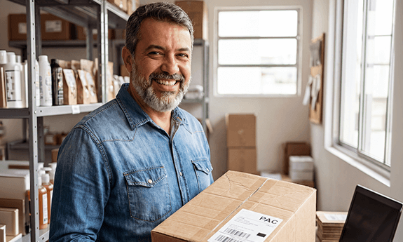 Imprima etiquetas de envio com sua marca e todas as informações de remetente e destinatário necessárias.